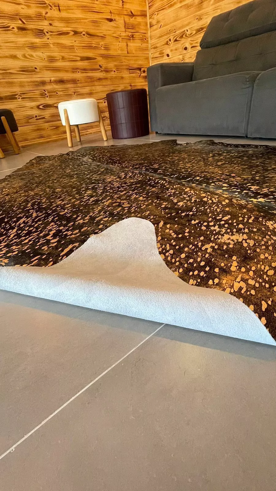 Os tapetes de couro no formato bovino são acessórios decorativos e funcionais, comumente usados para dar um toque rústico e elegante a ambientes. Geralmente, esses tapetes são feitos a partir de couro legítimo, que pode ser de boi, e são cortados no formato de uma pele bovina, o que confere uma aparência única e natural.